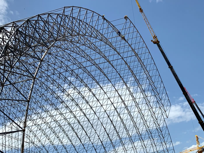 (2)网架加工前应对现场尺寸进行复测,确认无误后方可进行加工、安装;网架制作、运输、安装应遵守《空间网格结构技术规程》JGJ7-2010、《钢网架广东螺栓球节点》JG/T 10-2009、《钢网架广东螺栓球节点用高强度螺栓》 GB/T 16939-2016、《广东钢结构广东工程广东施工规范》 GB50755-2012、《广东钢结构广东工程施工质量验收标准》 GB50205-2020。